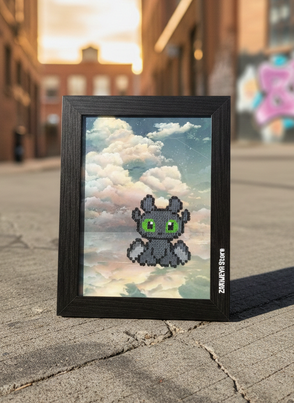 Este no es solo un cuadro; es una pieza de colección que fusiona la nostalgia de como entrenar a tu dragón con la estética vibrante de la cultura urbana. Cada figura está meticulosamente creada con Hama Beads , logrando un diseño unico.